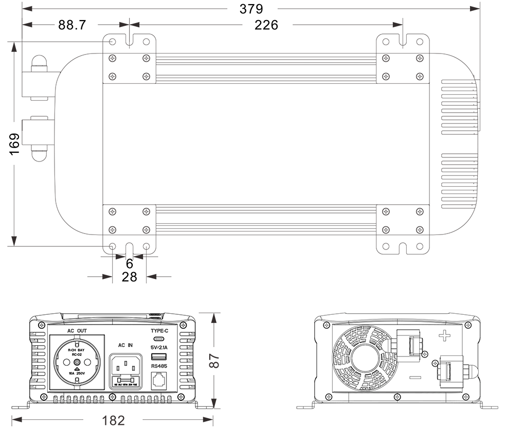 Mechanikai rajzok: (379x182x87mm)