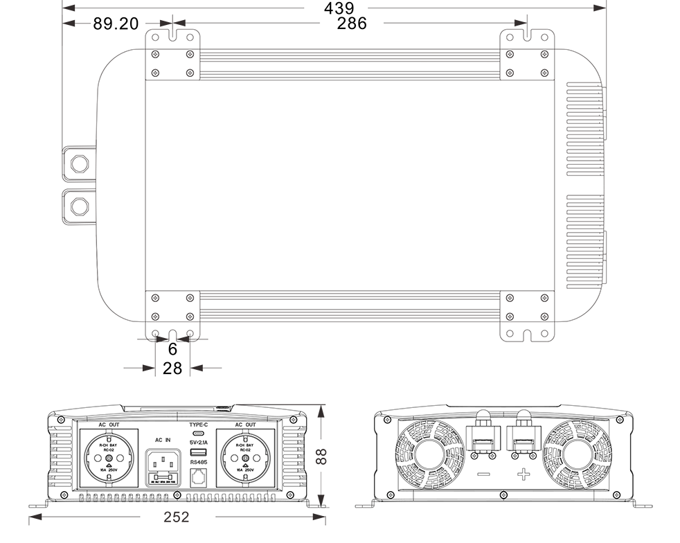 Mechanikai rajzok: (439x252x88mm)