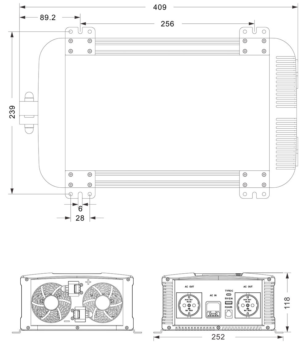 Mechanikai rajzok: (409x252x118mm mm)