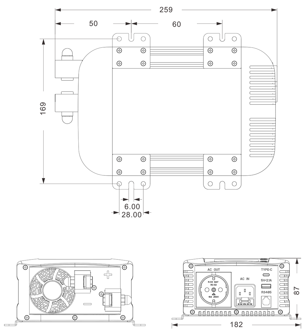 Átviteli kapcsoló Szabványos ATS: Az inverter és a közüzemi váltóáram: 8–10 ms; a hálózati váltóáram az inverter között: 16–25 ms.