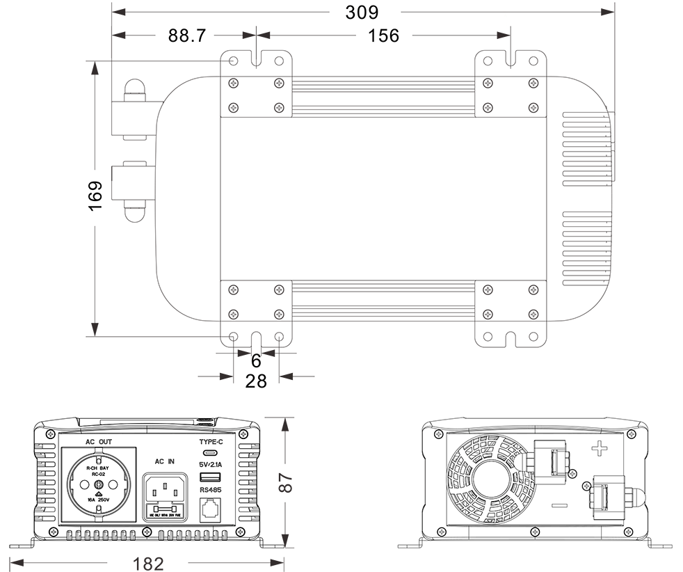 Mechanikai rajzok: (309x182x87mm)